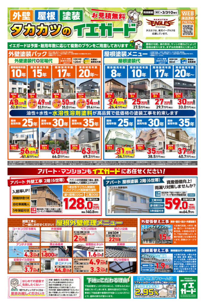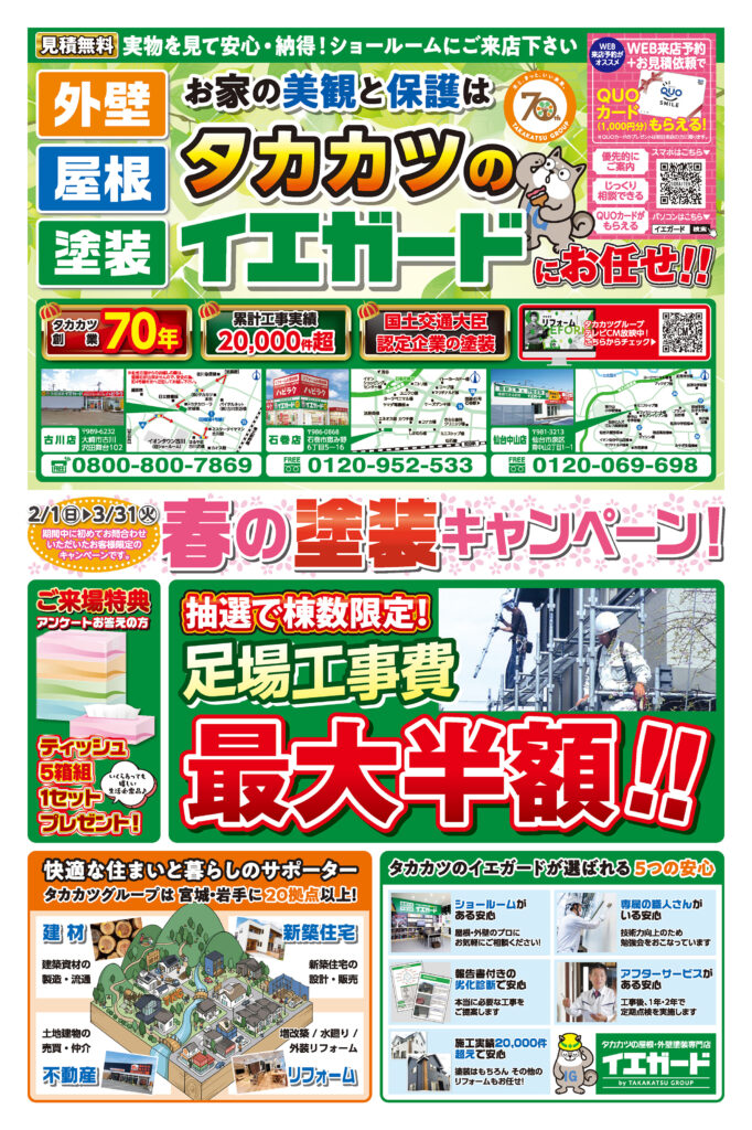 HOME > 最新情報 > チラシ情報 > 【2026年2月最新】タカカツのイエガード「春の塗装キャンペーン」開催中!
